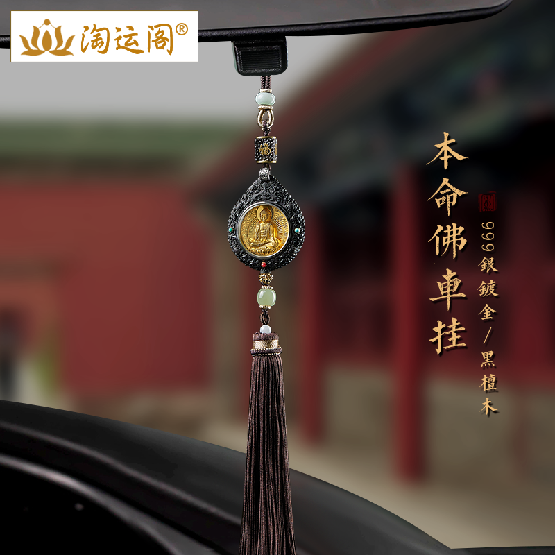 汽车挂件黑檀木银镀金本命佛吊坠车内吊饰2024新款后视镜装饰挂饰