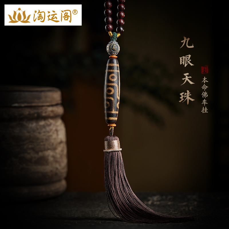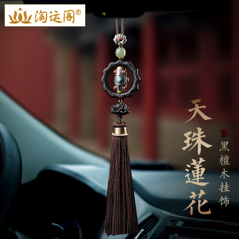 汽车挂件藏式九眼天珠黑檀木莲花挂饰车内吊饰车载后视镜流苏装饰