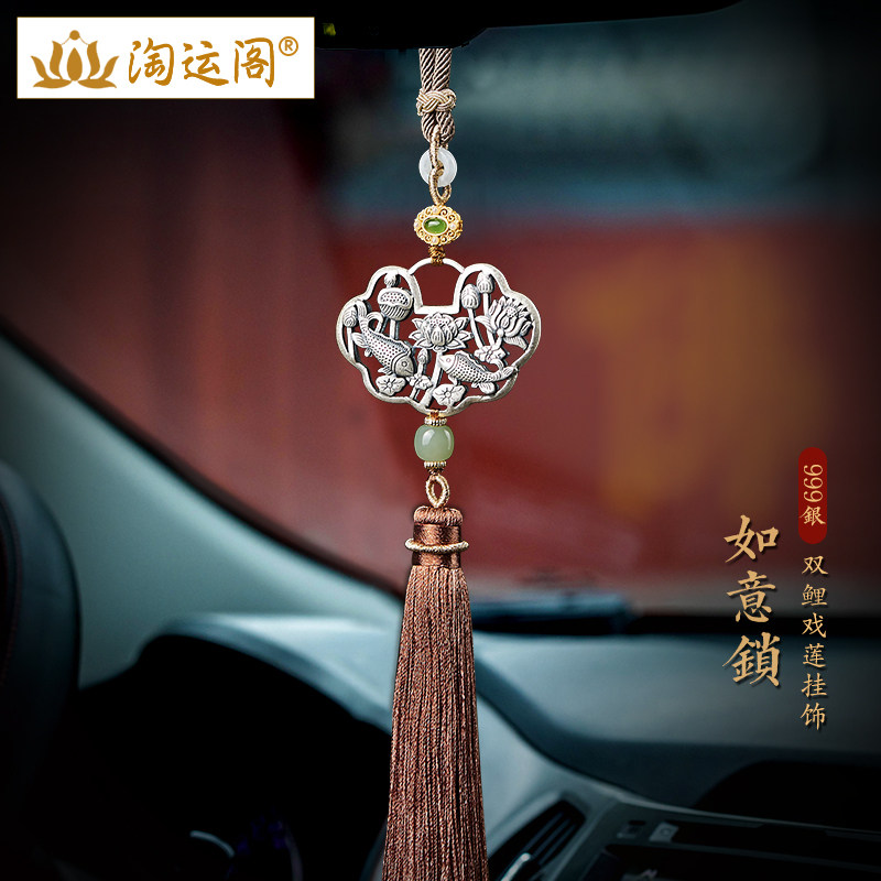 如意汽车挂件2024新款双鲤戏莲如意锁车内吊饰车载后视镜装饰挂饰