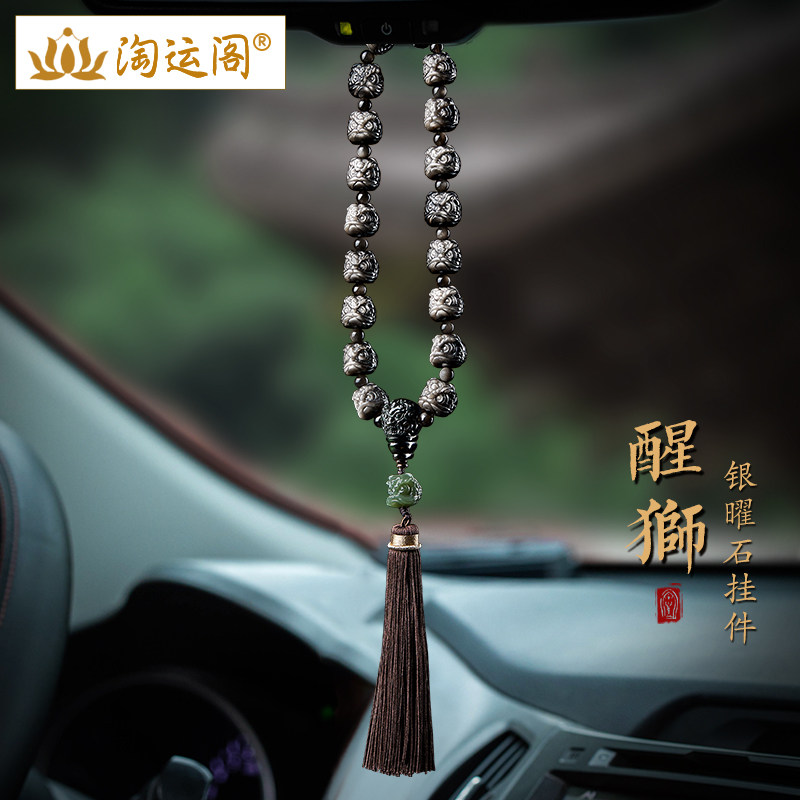 银曜石汽车挂件2024新款车内吊饰和田玉醒狮黑曜石貔貅后视镜挂饰