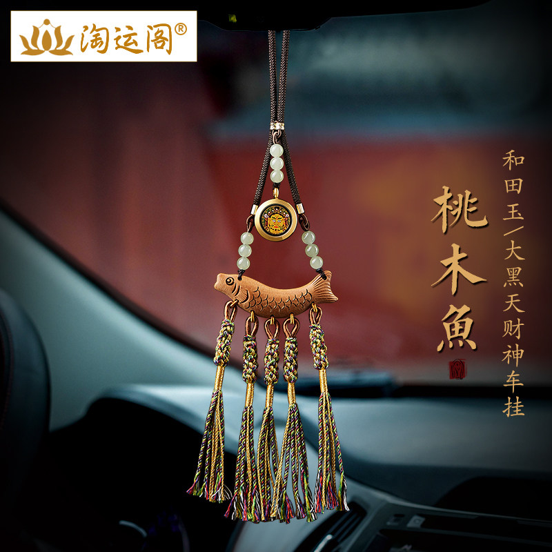 桃木鱼汽车挂件大黑天财神唐卡2024新款车内吊饰车载后视镜装饰品
