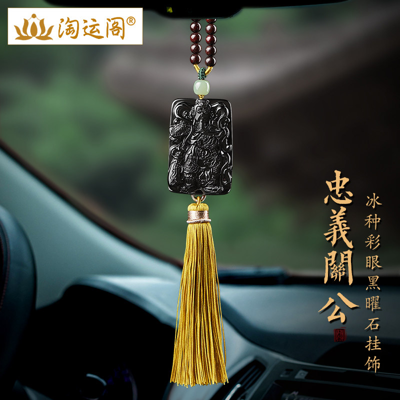 汽车挂件武财神忠義关公冰种彩眼黑曜石车内吊饰车载后视镜挂饰品
