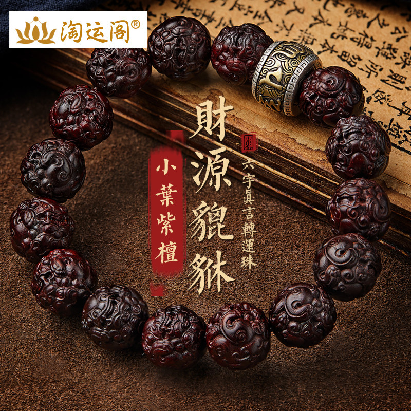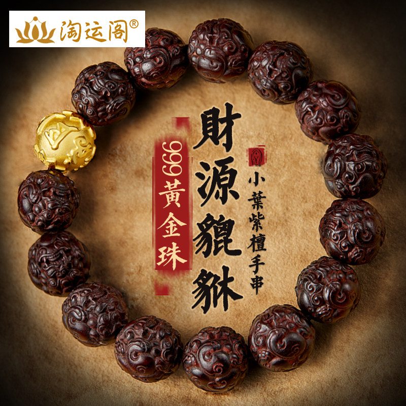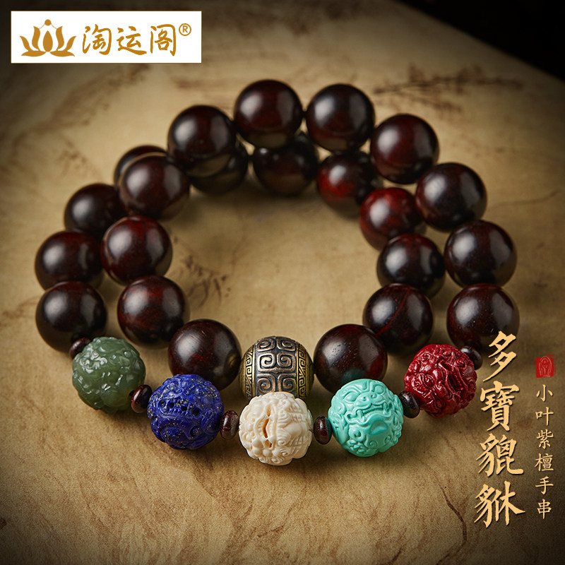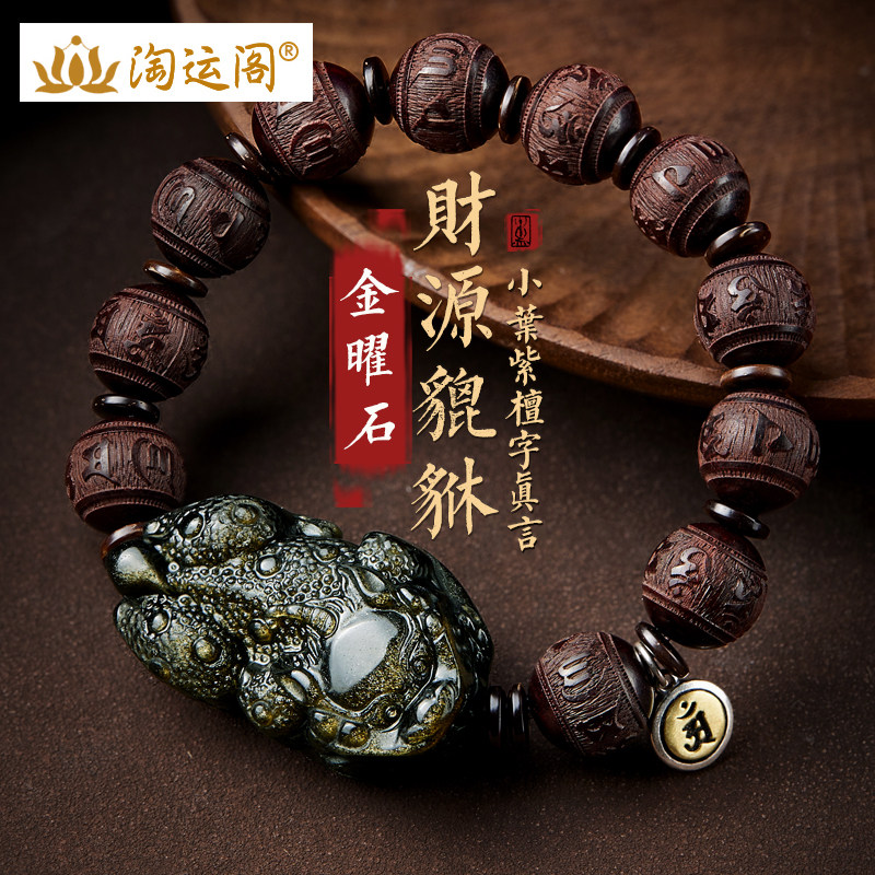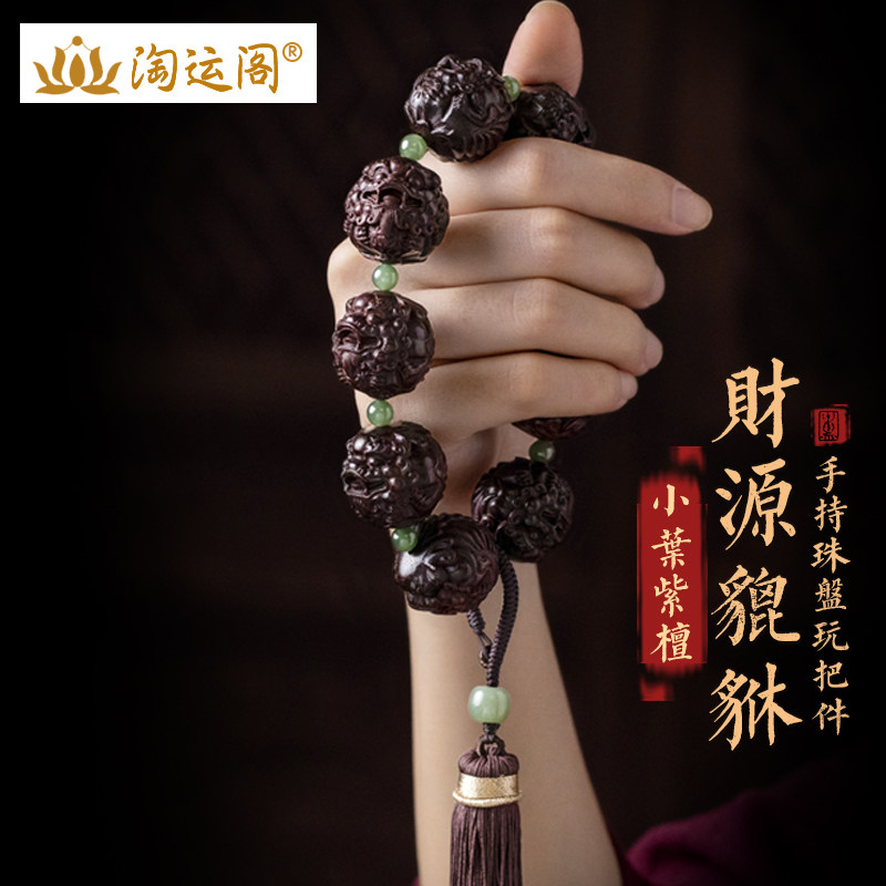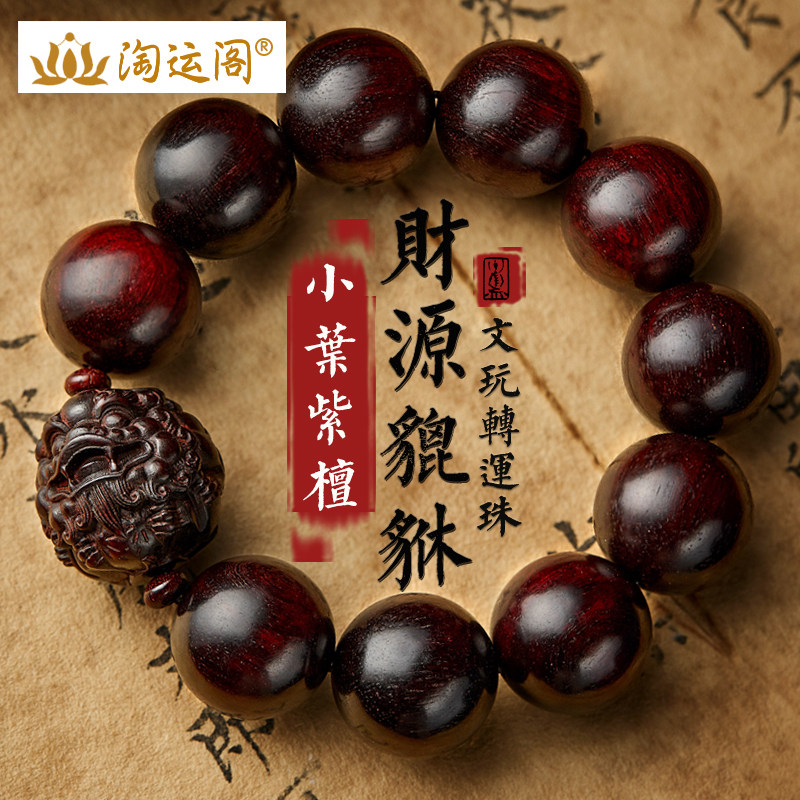 小叶紫檀手串男士盘玩文玩女金曜石貔貅手链转运珠佛珠念珠手把件