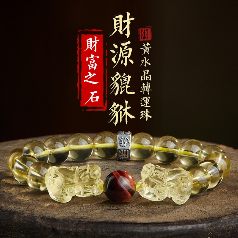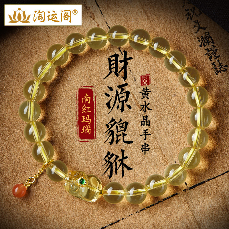 黄水晶手链女文玩南红玛瑙小众设计感转运珠貔貅手串佛珠念珠礼物