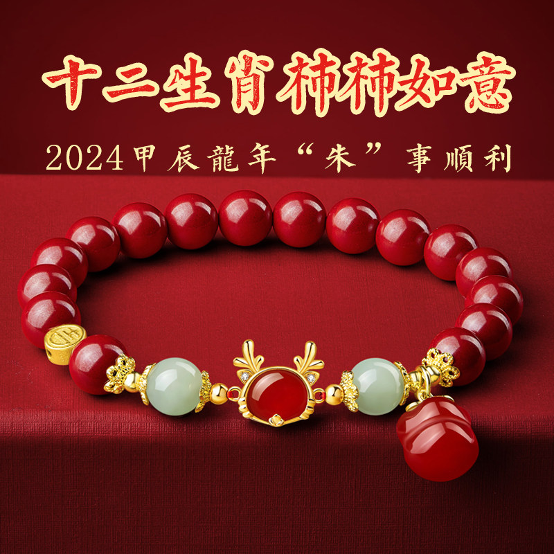 三八妇女节礼物女神节朱砂手串龙年本命年十二生肖转运珠手链女生
