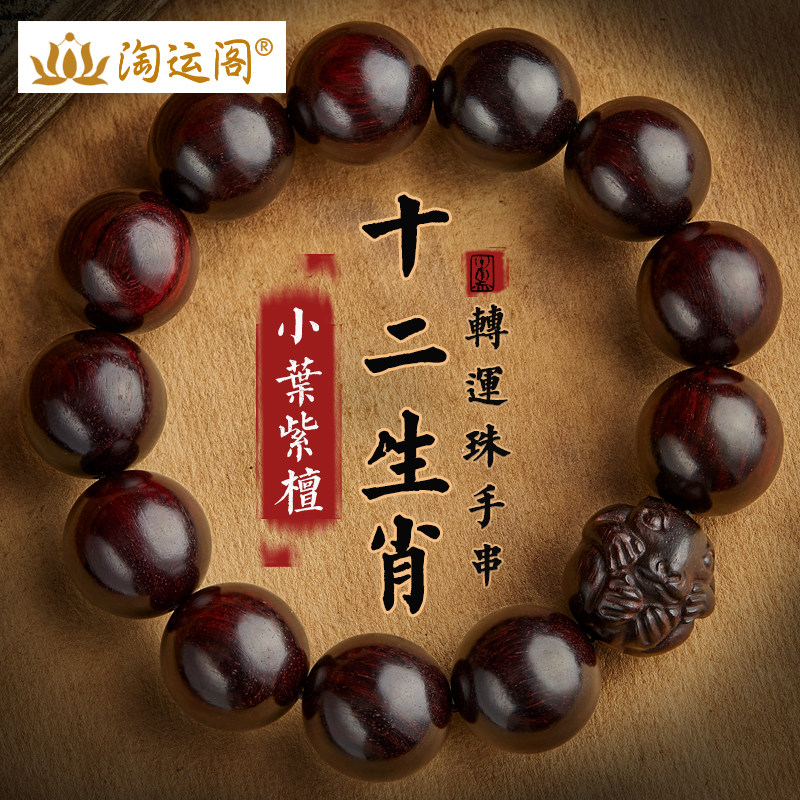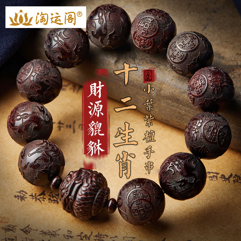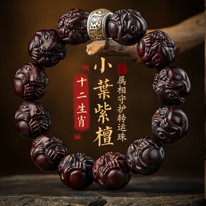 小叶紫檀手串文玩十二生肖手链转运珠男士大颗佛珠手持珠盘玩把件