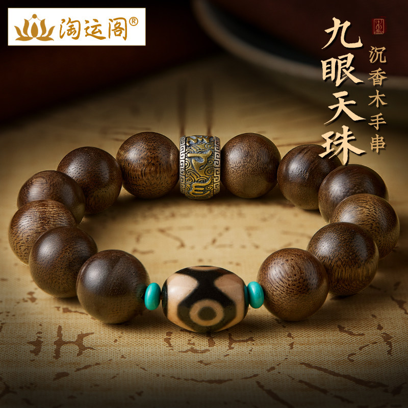沉香木手串男士盘玩文玩女九眼天珠六字真言转运珠佛珠念珠把件