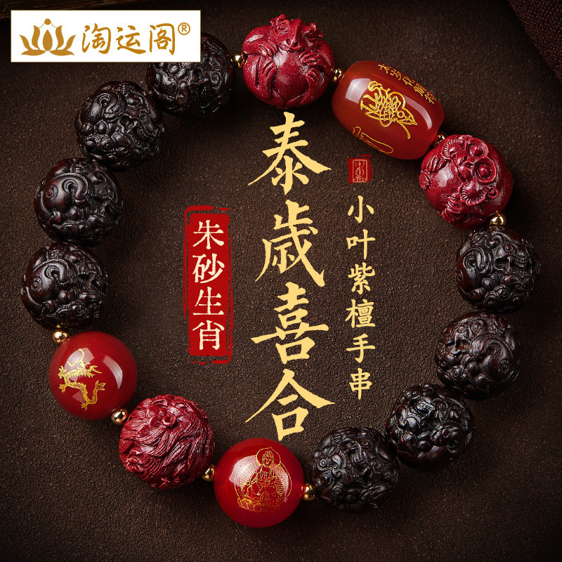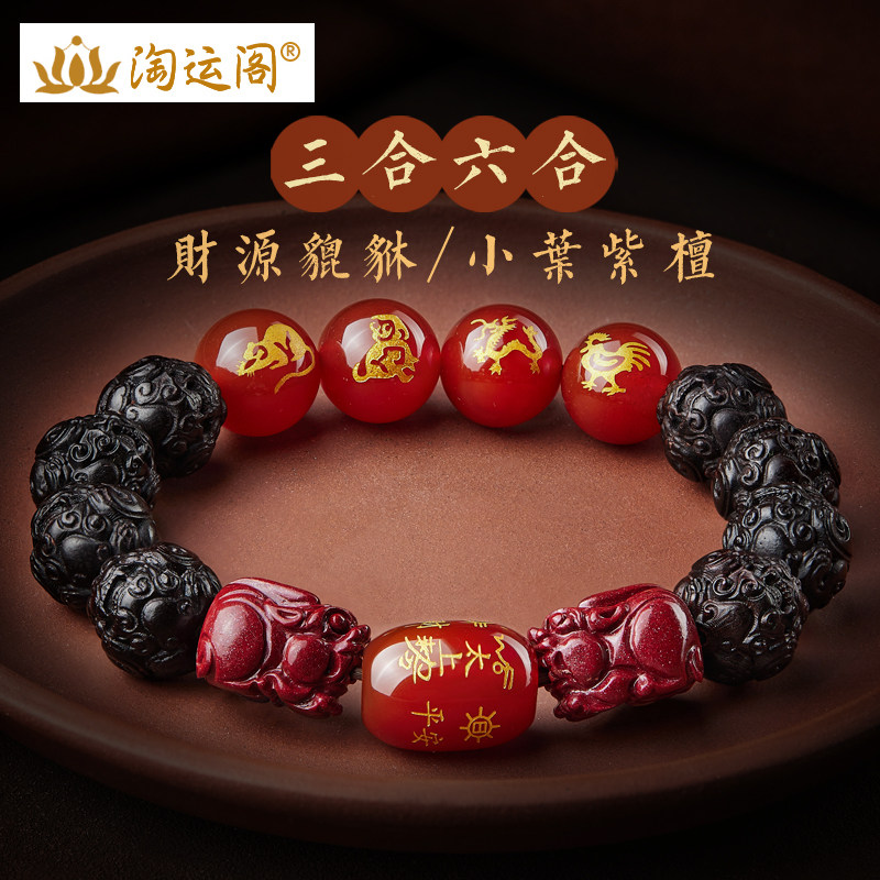 小叶紫檀手串男女盘文玩貔貅手链朱砂十二生肖三合六合玛瑙转运珠