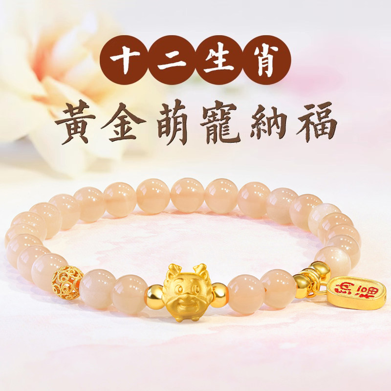 三八妇女节礼物月光石手串女女神节送女友黄金十二生肖手链转运珠