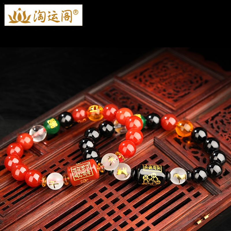 淘运阁喜合保岁吉宏手链2024龙年本命年红玛瑙黑曜石手串吉祥物