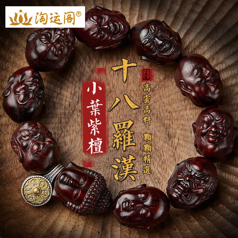 小叶紫檀手串男士盘玩和田玉本命佛手链文殊虚空藏菩萨佛珠转运珠