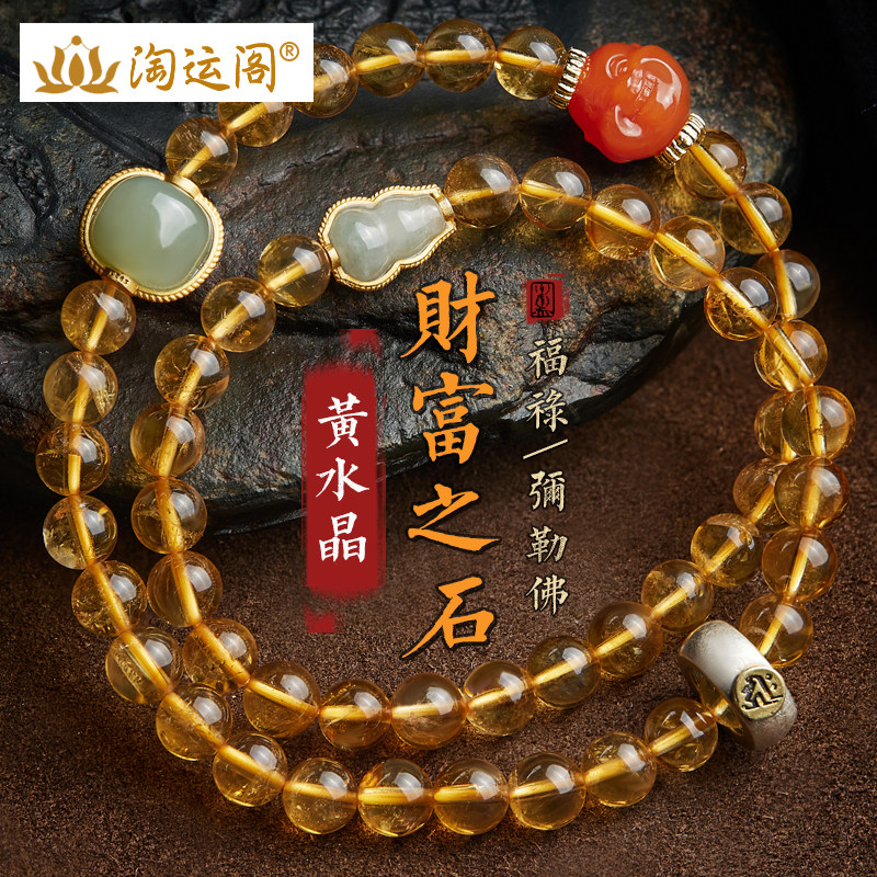 黄水晶手链女双圈金发晶转运珠手串文殊普贤本命佛生日礼物送女友