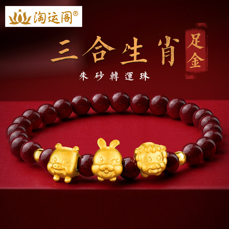 朱砂手串女三合生肖黄金转运珠佛珠手链送女友老婆妈妈的生日礼物