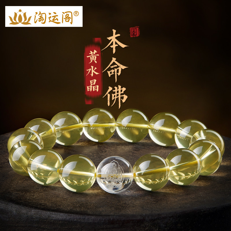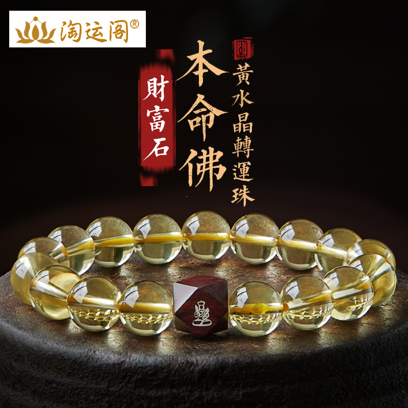 黄水晶手链正品原石男女小叶紫檀本命佛转运珠佛珠一对情侣款手串
