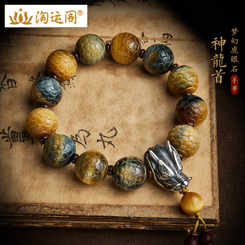 虎眼石手串男士盘玩999银龙珠转运珠手链梦幻龙鳞纹虎睛石手把件