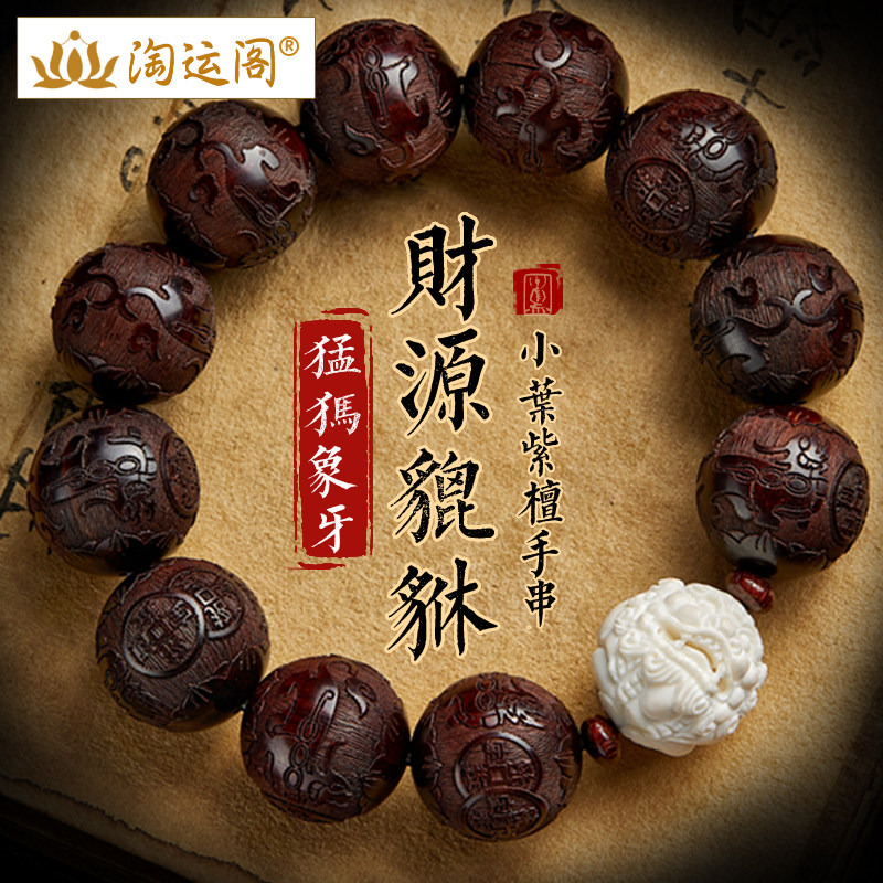 小叶紫檀手串男士文玩念珠佛珠猛犸象牙貔貅手链女大颗盘玩手把件