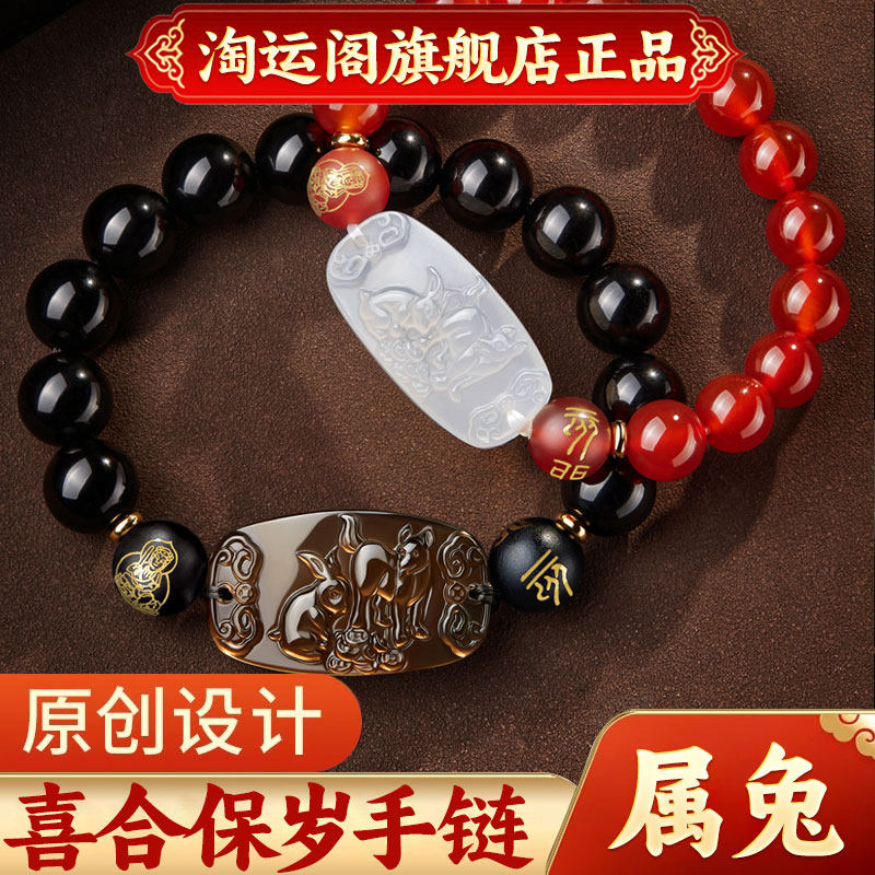 生肖兔淘运阁喜合保岁吉宏手链男女2024龙年属兔人手串吉祥佩戴物