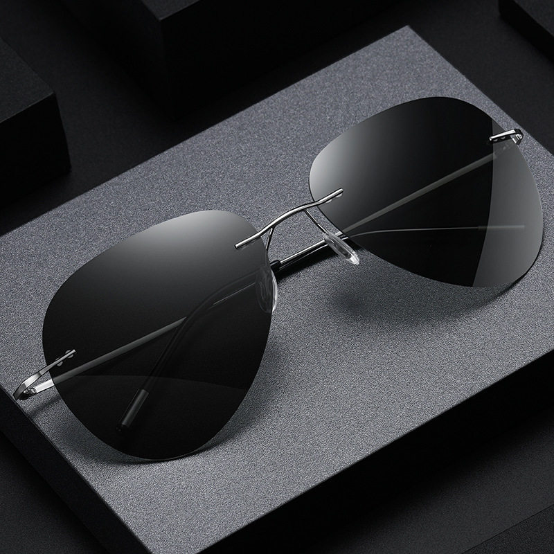 纯钛超轻偏光变色太阳镜日夜两用开车墨镜男女时尚个性无框大脸