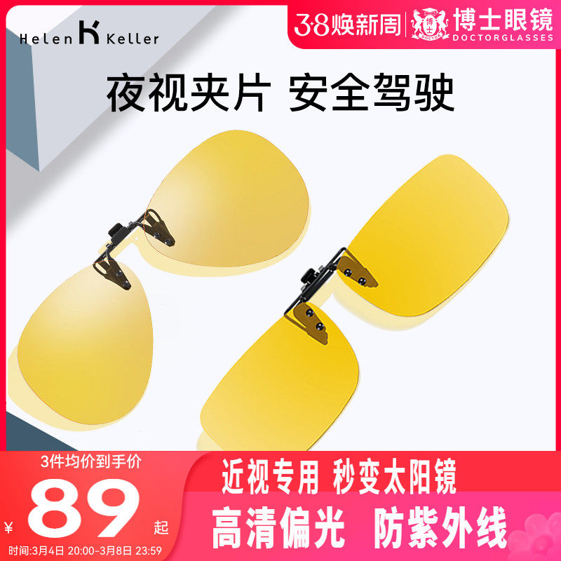 海伦凯勒眼镜男士夜视开车驾驶防远光灯偏光近视墨镜夹片801