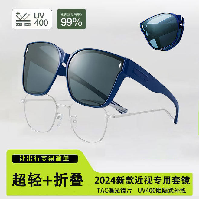 焦下近视折叠套镜2024新款墨镜男女户外偏光防晒防紫外线太阳眼镜