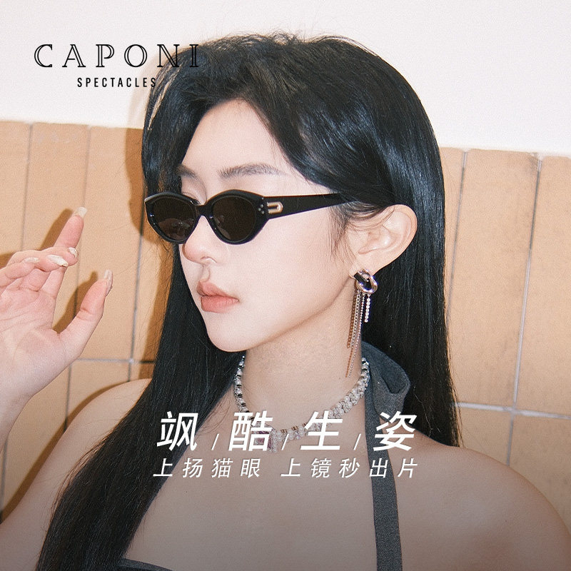 CAPONI复古猫眼GM墨镜女2024新款高级感防紫外线偏光太阳眼镜dada