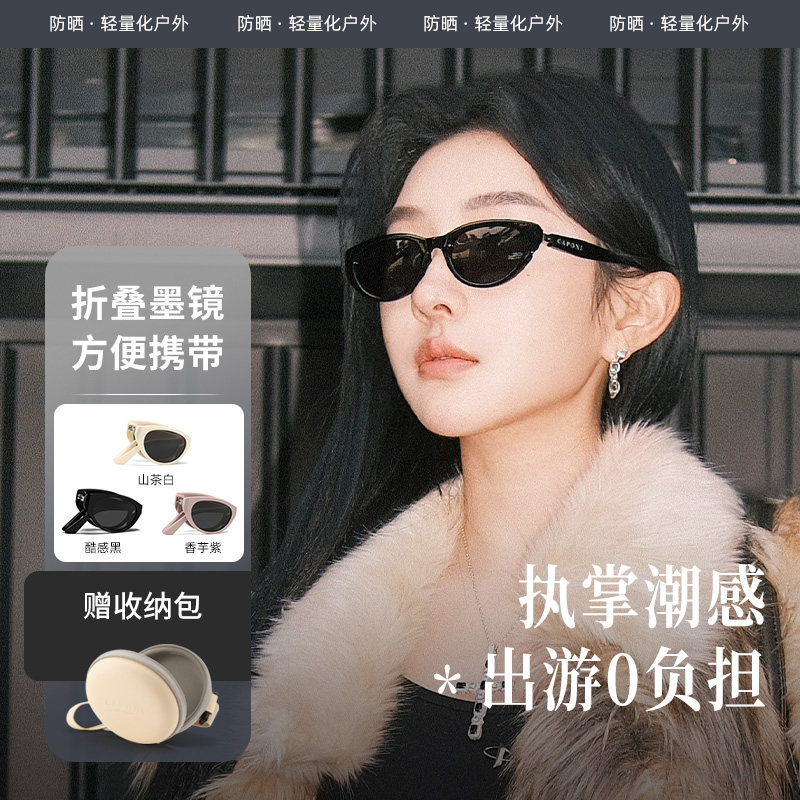 CAPONI小框猫眼墨镜女2024新款可折叠高级感偏光防紫外线太阳眼镜