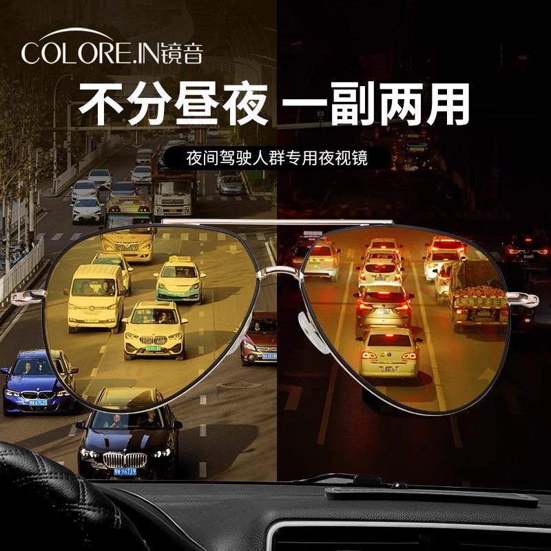 洛伊士眼镜日夜两用官网旗舰店变色偏光太阳镜男女开车夜视镜墨镜