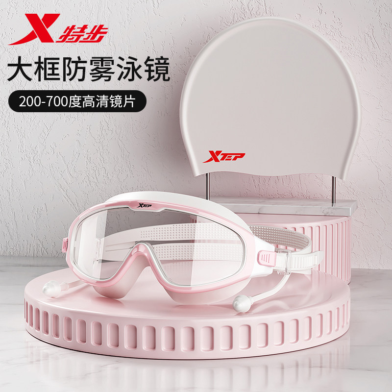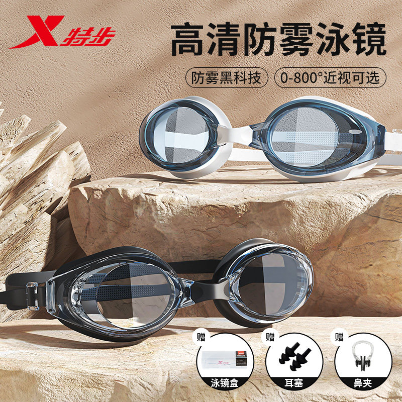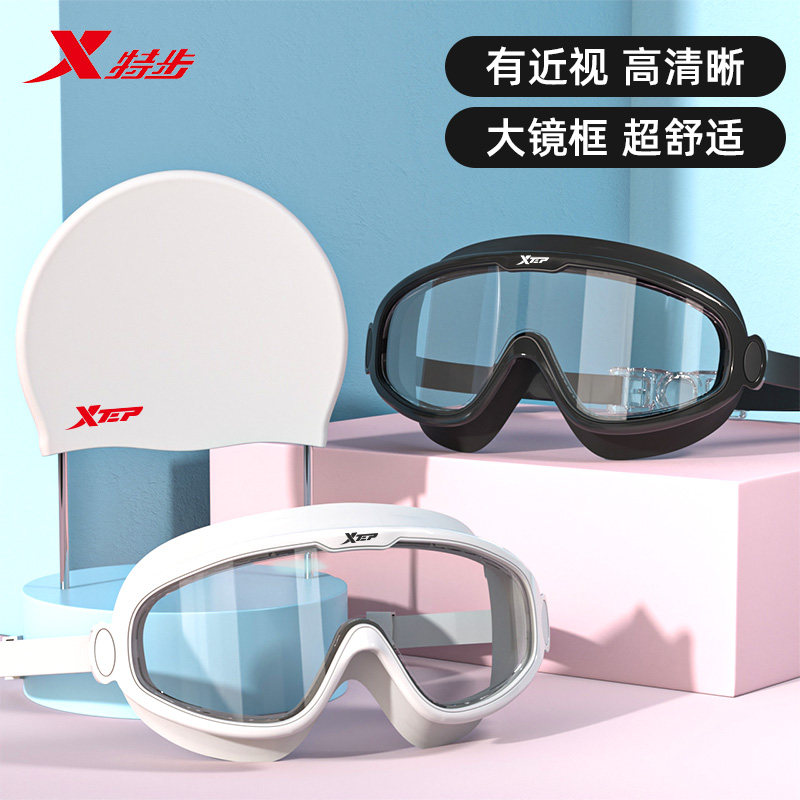 特步泳镜防水防雾高清男款潜水装备大框近视度数游泳眼镜泳帽套装