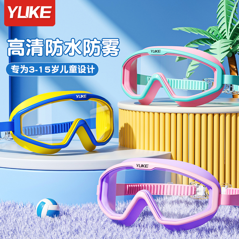 儿童泳镜泳帽男童女童游泳眼镜防水防雾高清大框潜水镜专业套装备
