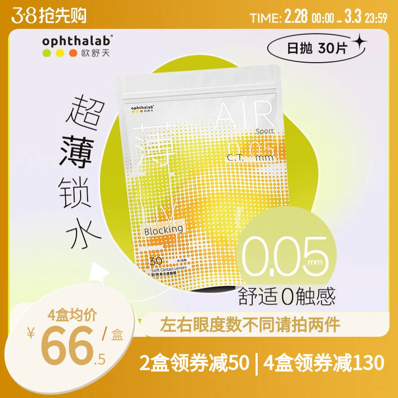 ophthalab法国欧舒天超薄小立袋近视运动隐形眼镜日抛30片透明