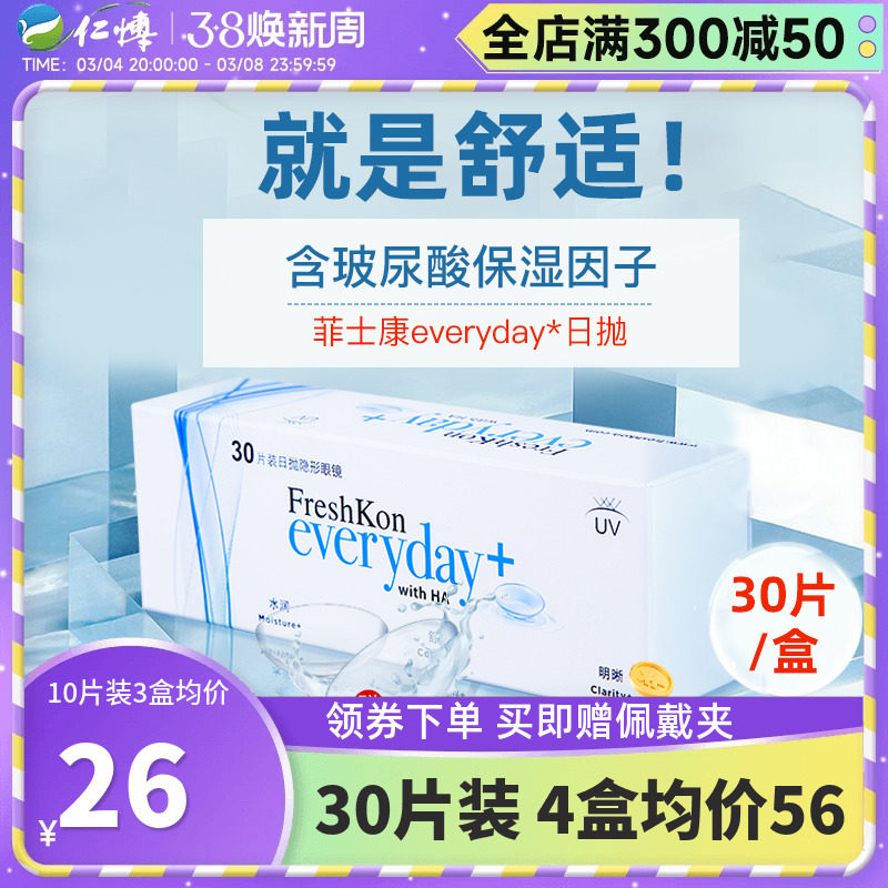 菲士康隐形近视眼镜日抛30片玻尿酸舒适抗uv小直径运动8小时正品