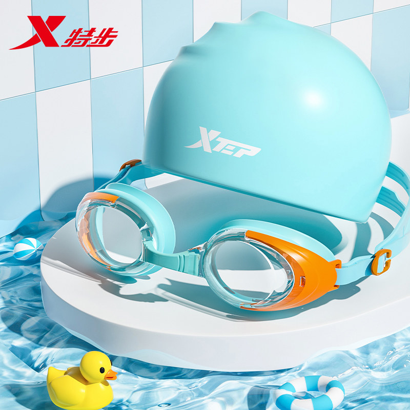特步儿童泳镜女童高清防雾防水泳帽泳镜套装男童中框专业游泳眼镜