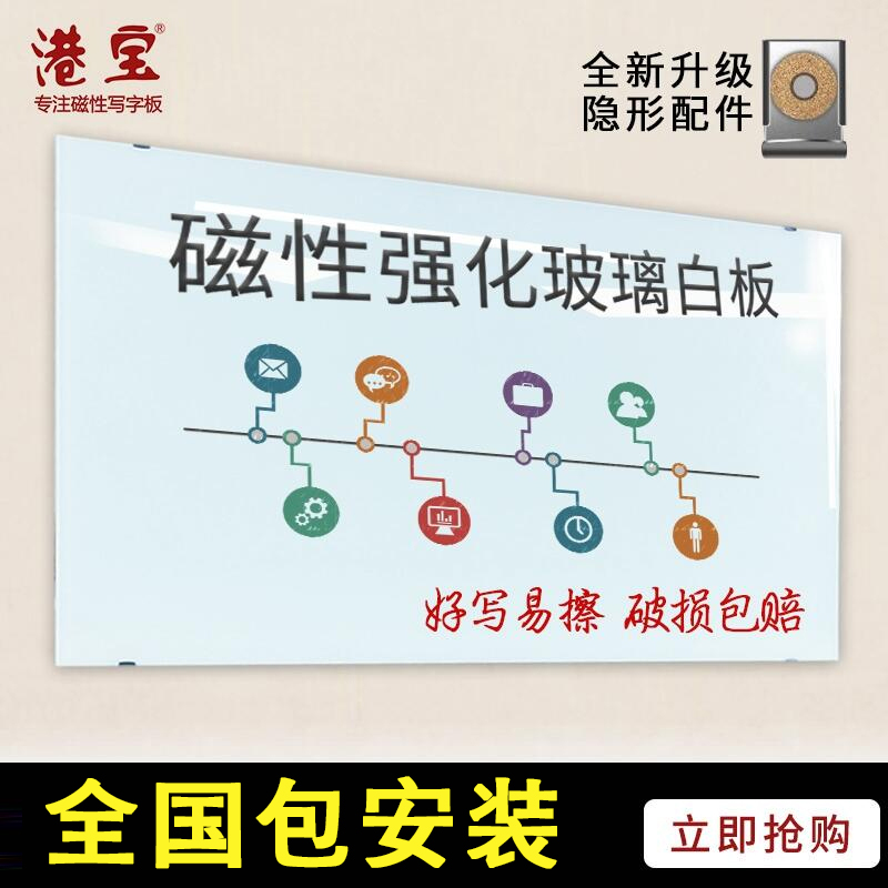 港宝挂式玻璃白板写字板可擦写磁性讲课记事板家用儿童手写墙贴小白版展示大白班教学培训会议办公室黑板