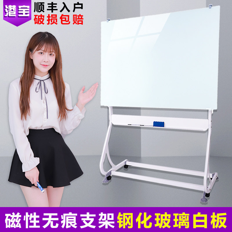 双面磁性钢化玻璃白板支架式带轮可移动书写板办公室会议教学培训讲课写字板记事板手写板留言板黑板墙