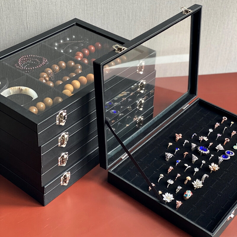 玻璃大号黑色珠宝首饰展示收纳盒耳环格子手镯吊坠项链文玩戒指盒