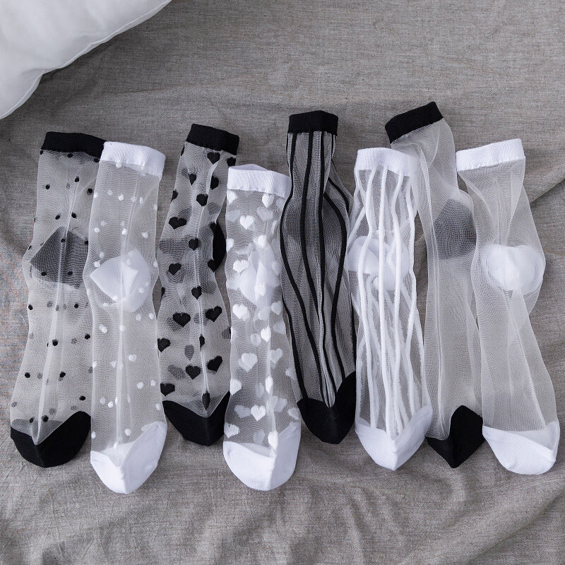 jk水晶袜子女夏季薄款透明玻璃丝袜中筒袜ins潮韩国网纱春秋短袜