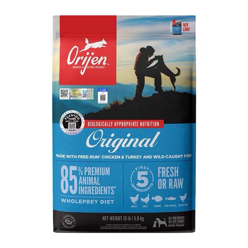 Orijen渴望加拿大成犬幼犬粮通用无谷鸡肉六种鱼原味狗粮11.4kg