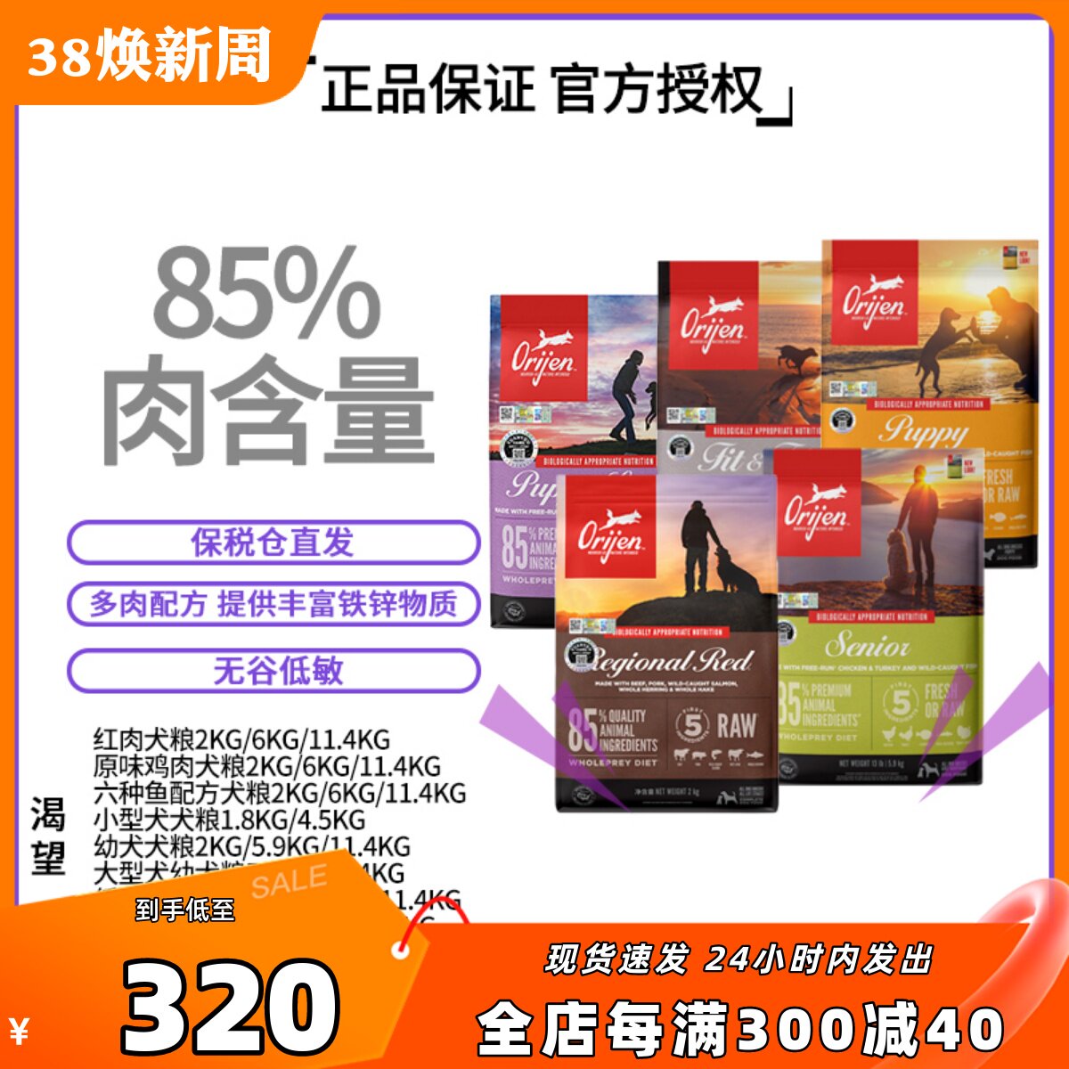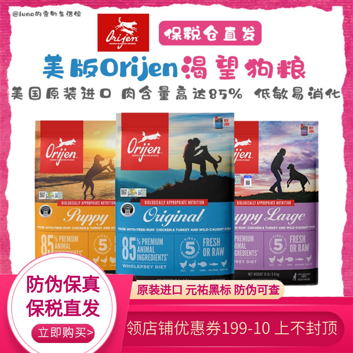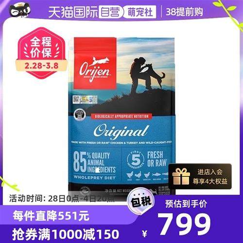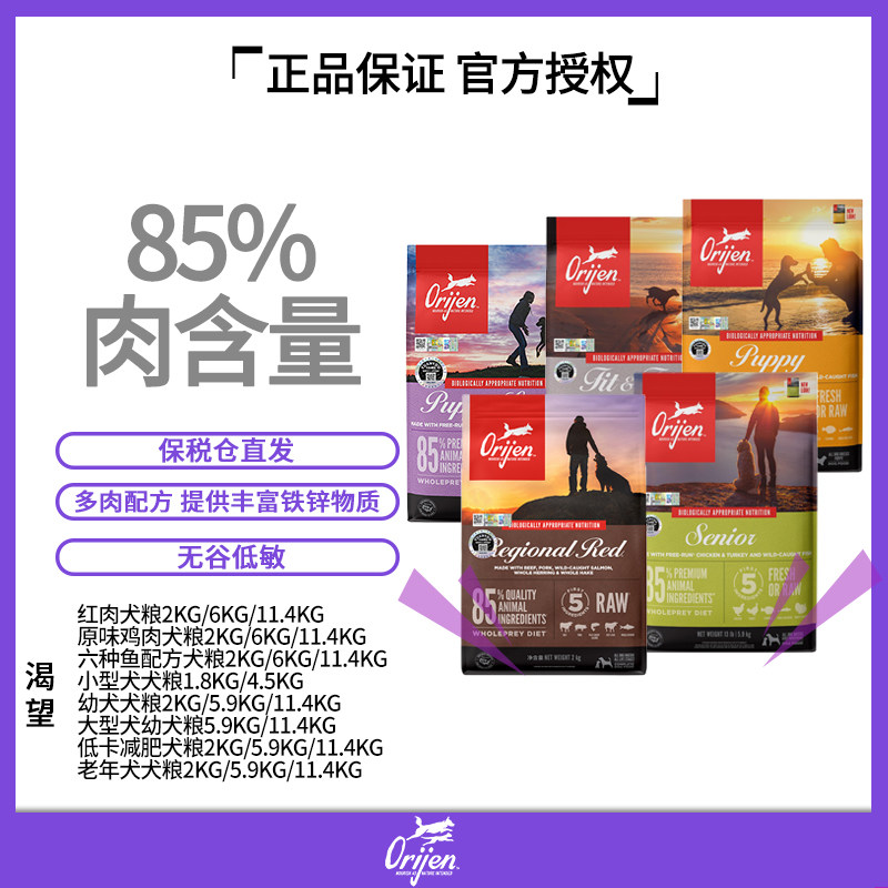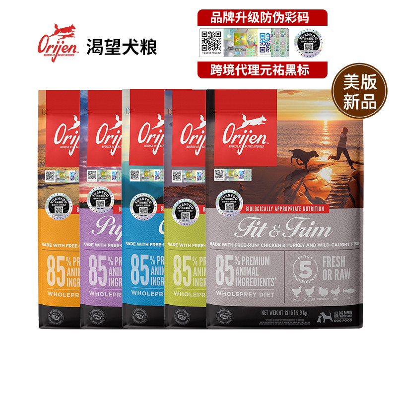 保税直发美版orijen渴望犬粮无谷成犬幼犬高龄犬通用型进口狗粮