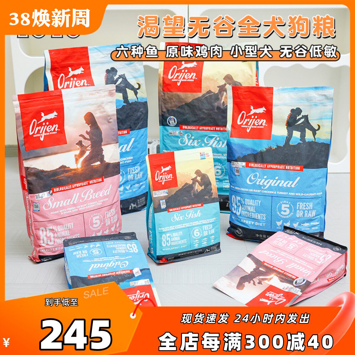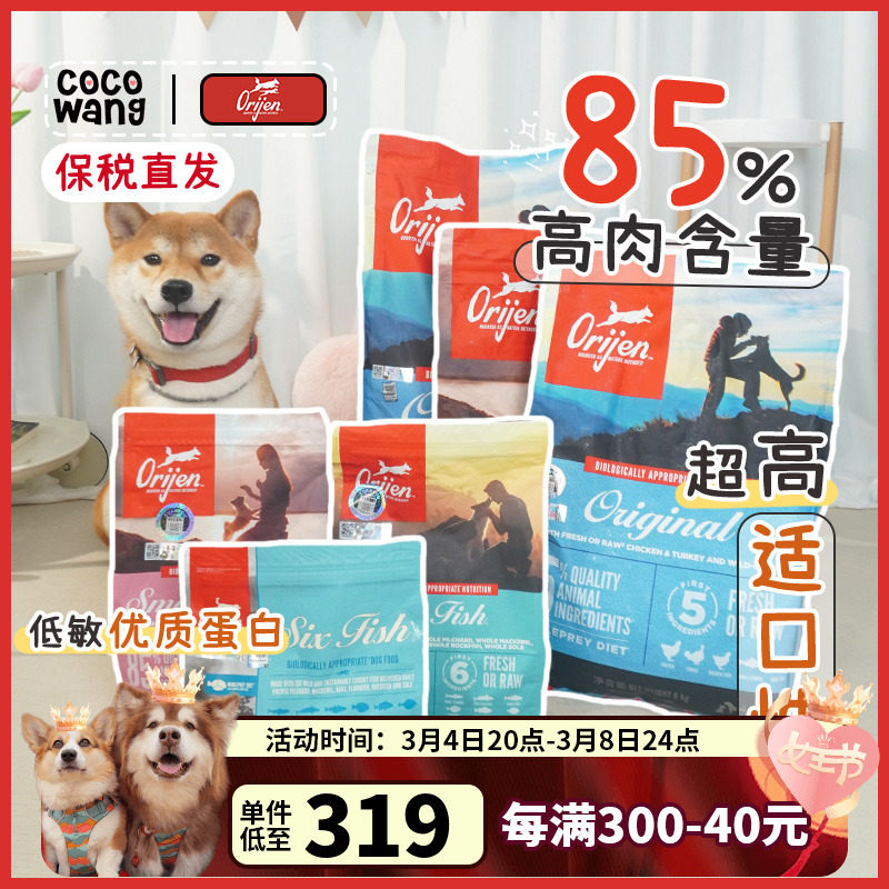 保税仓直邮ORIJEN渴望狗粮鸡肉六种鱼小型犬无谷高蛋白全犬粮美版