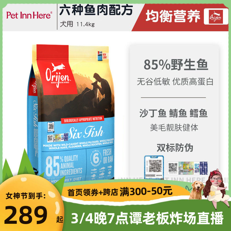 Orijen原始猎食渴望无谷通用鱼肉犬粮干粮全阶段六种鱼狗粮11.4kg