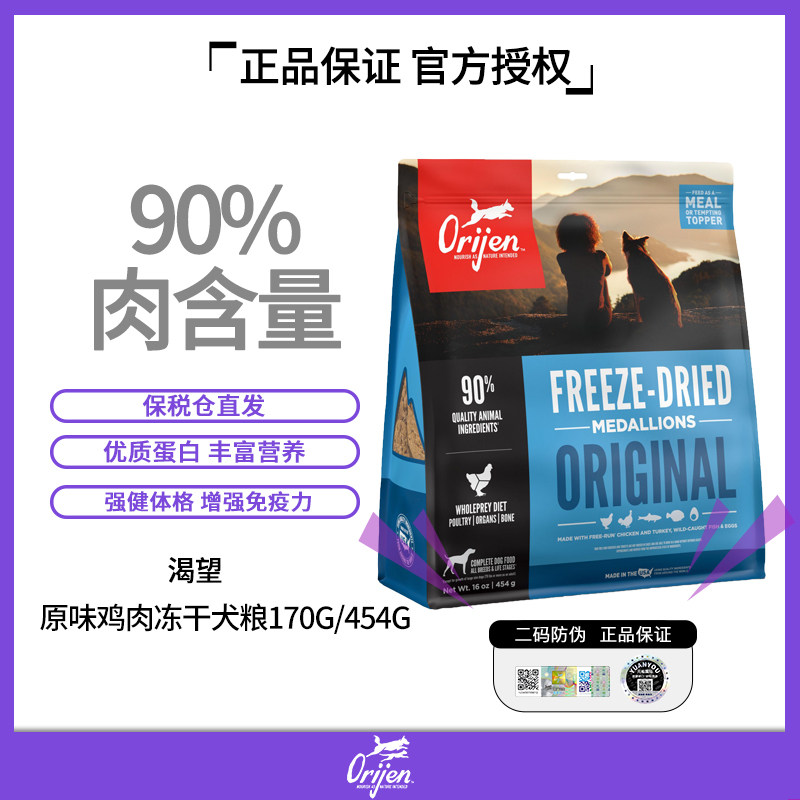 orijen原始猎食渴望原味鸡肉配方主食冻干狗粮