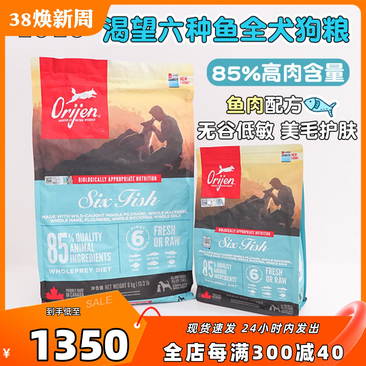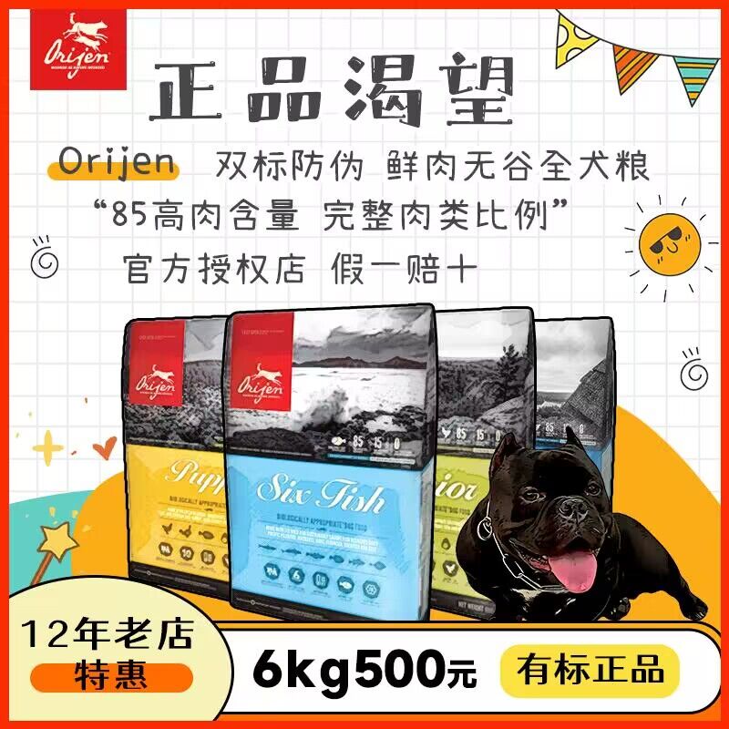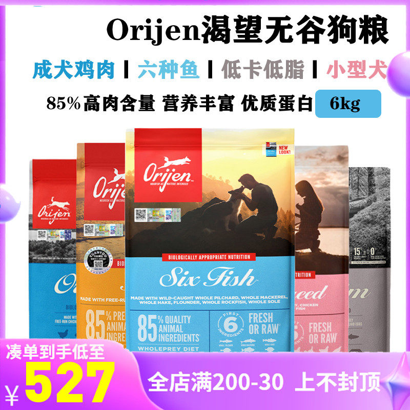 【正品保证】Orijen渴望狗粮加拿大进口六种鱼无谷通用型狗粮6kg