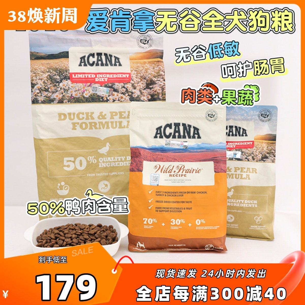 PET INN 加拿大爱肯拿Acana进口狗粮无谷鸭肉梨清火全犬渴望同厂