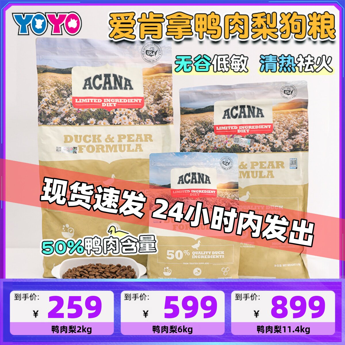 YOYO宠物爱肯拿鸭肉梨狗粮Acana爱肯拿犬粮缓解泪痕低敏渴望同厂