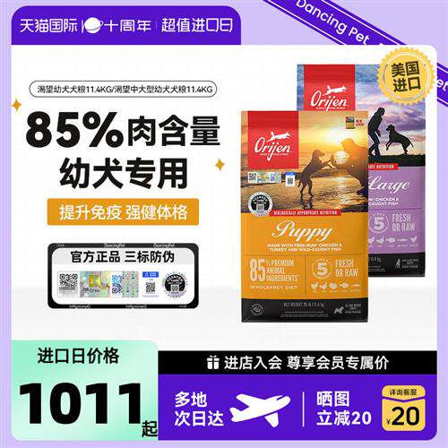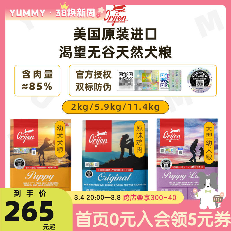 Orijen/渴望进口幼犬犬粮天然无谷鸡肉味狗粮通用幼犬专用11.4kg