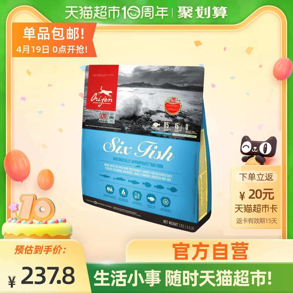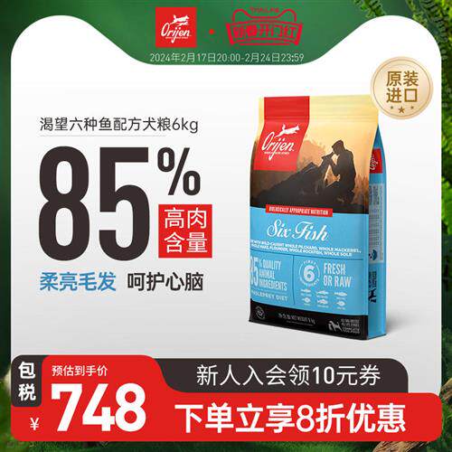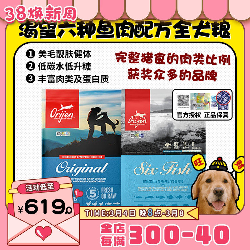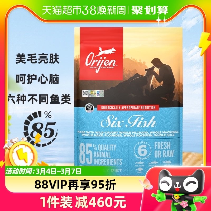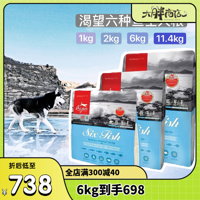 【旗舰店】orijen原始猎食渴望狗粮六种鱼成犬幼犬通用犬粮6kg