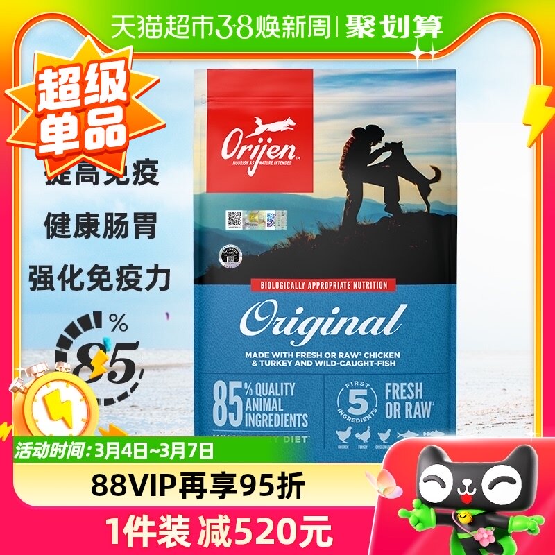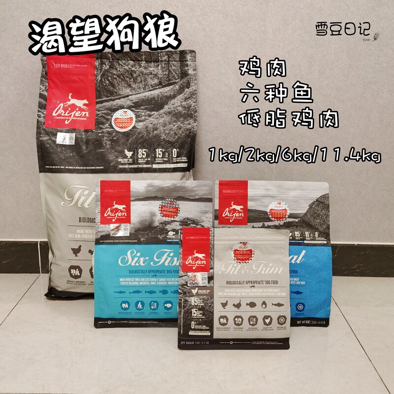 渴望Orijen狗粮原味鸡肉六种鱼成犬老年犬加拿大无谷低敏营养犬粮