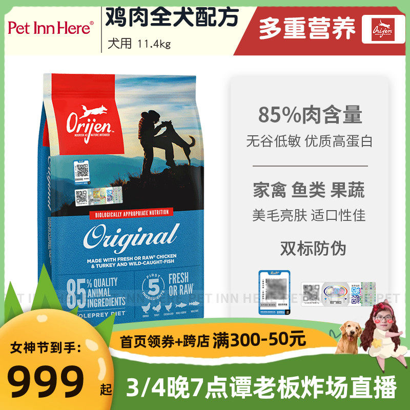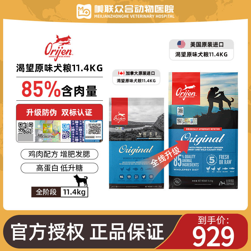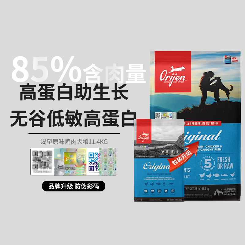 美版Orijen渴望狗粮原味鸡肉犬粮成犬幼犬通用11.4kg部分效期24/8