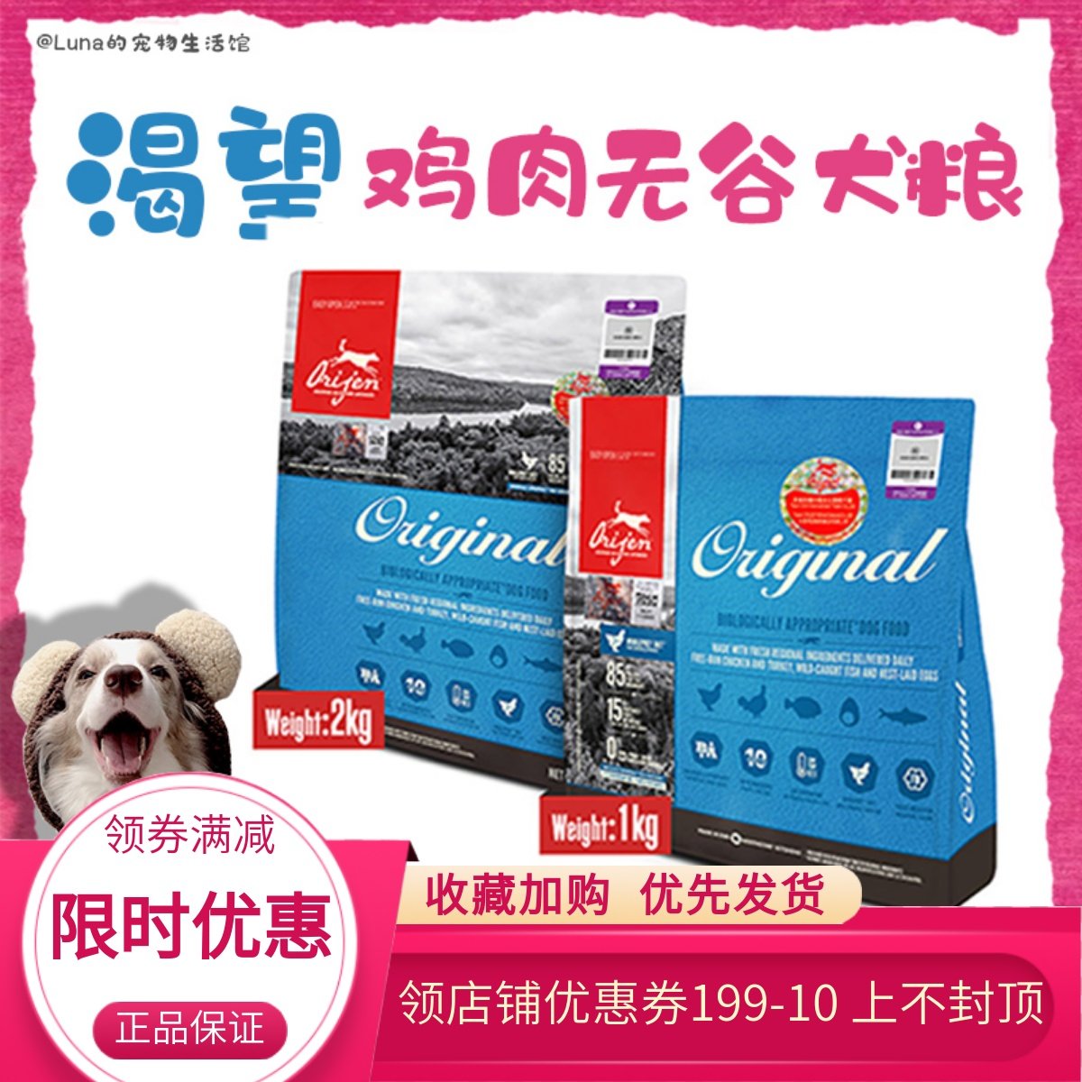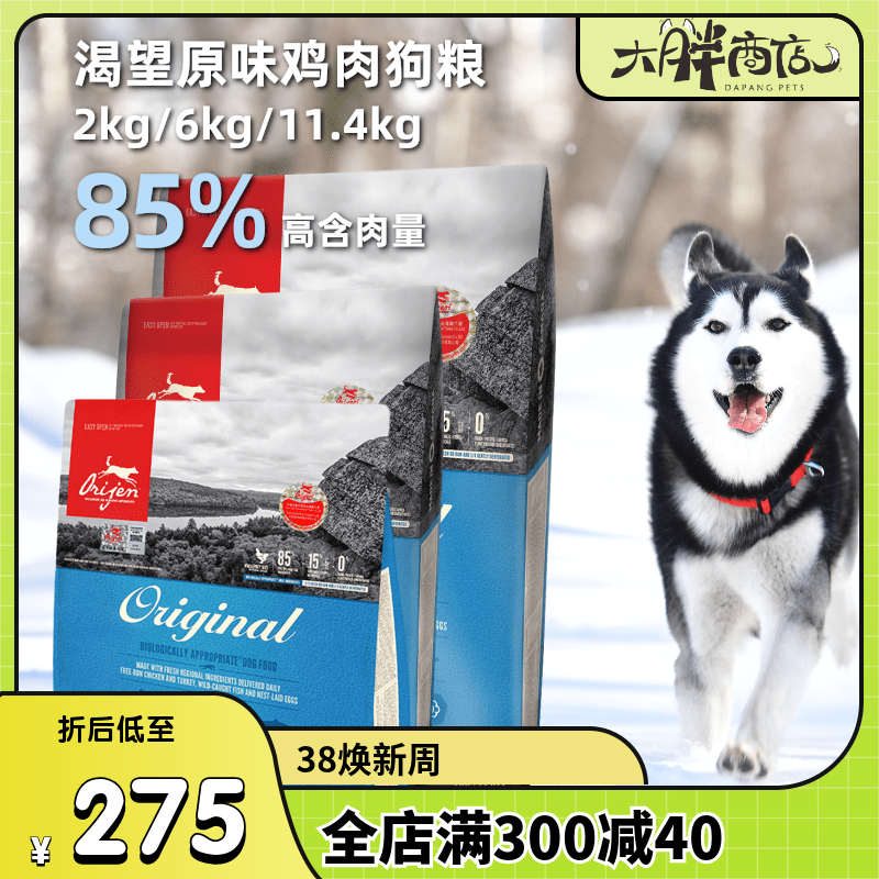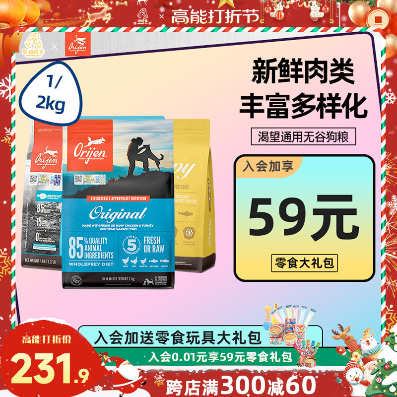渴望狗粮Orijen加拿大进口无谷鸡肉全价天然成犬幼犬通用狗粮2kg