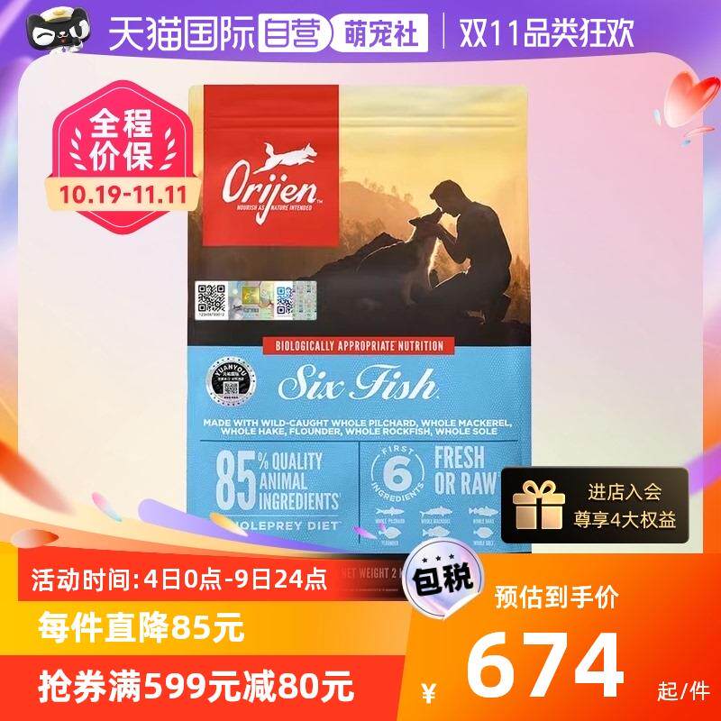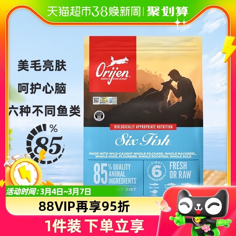 带防伪加版Orijen渴望无谷六种鱼全犬粮美毛护肤营养成犬幼犬狗粮